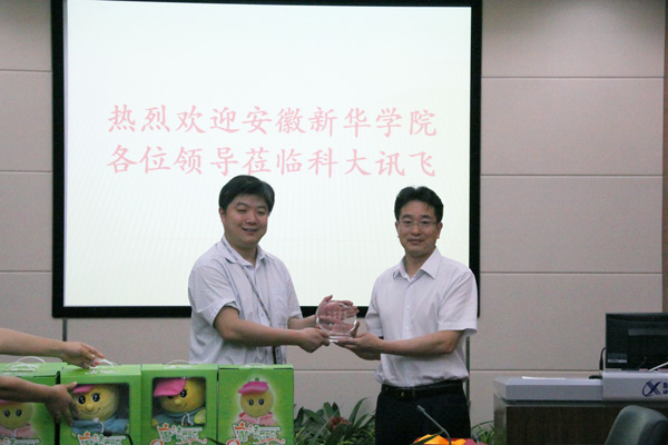 6月10日上午,学院副院长马凤余、外国语学院和招生就业办公室相关负责同志来到安徽科大讯飞信息科技股份有限公司参加实习基地签署仪式。科大讯飞高级副总裁胡郁等还与马凤余一行进行了交流会谈。