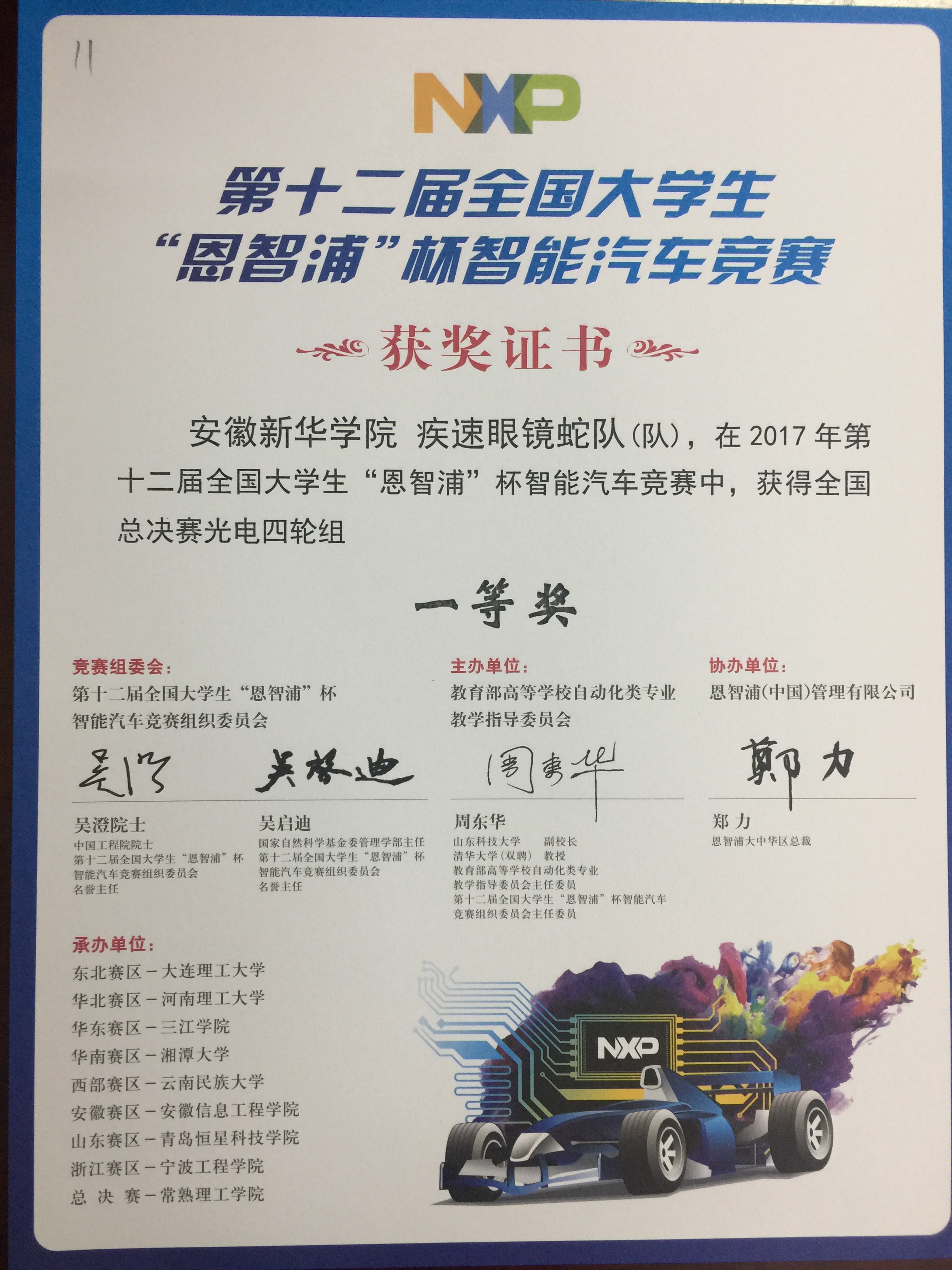 我校在第十二届“恩智浦杯”全国大学生智能汽车竞赛中喜获两项全国一等奖