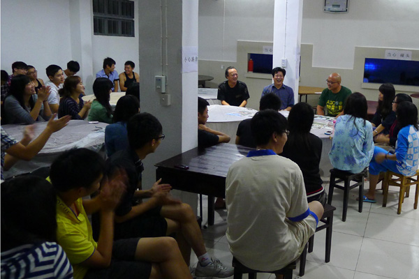 各院校的师生同聚一堂展开生动活泼的交流。老师们对艺术写生的色彩搭配、构图技巧、虚实变化等问题进行了深入的探讨,黄坤老师认为在色彩表现中应以自然色为主,既要表现客观物象,又要抒写作者的意境。面对自然景观时,如何取舍,如何对待画面与自然的关系,画面与画面自身因素的关系,以及通过处理、控制而引申出对待生活、对待艺术、对待自己的意识和观念。王燕老师的“看十眼画一笔,看一眼画十笔”的辩证观点,让学生了解到,在绘画过程中应“先学看,后学画”,先有对“形”与“色”的敏感,才会有对他们的描绘,只有通过“举一反三”和“以一当十”,才能用自己的方法将空间中,不同大小、形状、颜色、距离的事物、物体有机的联系起来,得到各位老师及学生的广泛赞同。同学们与老师之间就景象的“美与不美”展开热烈的讨论,在老师的指引下,认识到所有的物体本身都没有美与不美之分,决定他们美或不美的因素是我们如何看待他们,如何表现他们。庞勇和王小路先生也让大家分享了他们多年来指导学生写生的经验及在艺术创作领域的观点和见解。