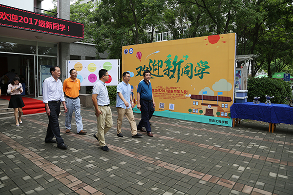在迎新现场,校领导嘱咐迎新工作人员要认真把握迎新工作每一个环节,细致周到地开展工作,要以良好的校园环境和精神面貌迎接新生,确保迎新工作安全有序、热情周到,让学生满意,让家长放心。