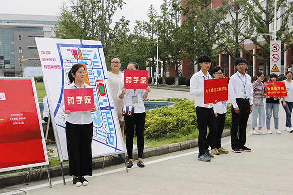 校领导一行来到各二级学院的新生报到点检查迎新工作情况。各二级学院门前大气醒目的“欢迎新同学”喷绘,动漫学院迎新工作人员身着特色服装,土木与环境工程学院、电子通信工程学院、信息工程学院展示各具专业特点的模型……各二级学院咨询处、报到处、缴费处、家长休息处、就餐安排、志愿服务等各个工作点都安排妥当,确保迎新工作平稳顺畅。