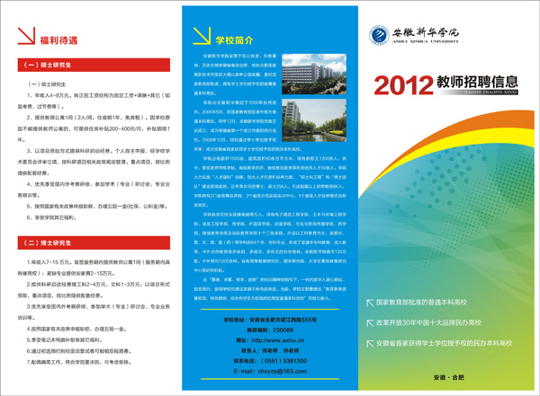 为做好本年度的招聘宣传工作,扩大学校的影响力,人事处积极与省内外各大重点高校招生就业办以及国内知名网络招聘单位联系,通过网络广泛发布招聘信息,并制作精美的学校宣传海报和招聘宣传彩页,多渠道增强我校招聘的关注度。此外,人事处还对部门网站进行了全面更新和改版,进一步提升人事处对外窗口形象。应聘人员可通过浏览我校网站首页及人事处网站首页查看详细的招聘信息及我校招聘工作流程安排。