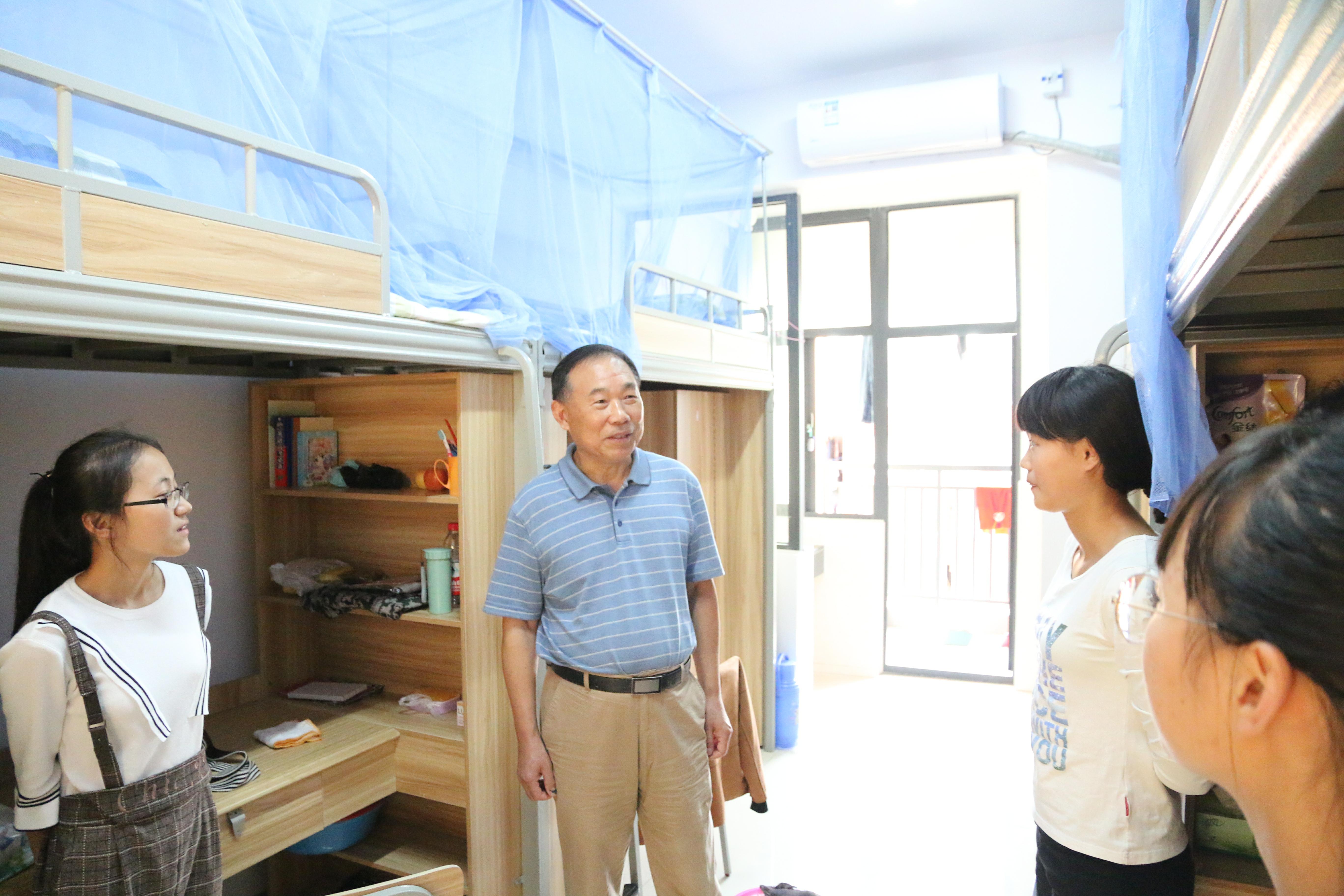 副校长杨世国随后走访了财务管理专业、广告专业、工业设计专业新生所在宿舍,亲切地询问了同学们的家乡、专业、对宿舍环境的满意程度等问题。杨世国嘱咐道:“刚上大学的同学们千万不要因为高考结束就开始放松警惕,大一大多是基础课程,正式夯实基础的好时机,同时对四年的大学学习生活要有一个长远的目标,要有自己的规划。”
