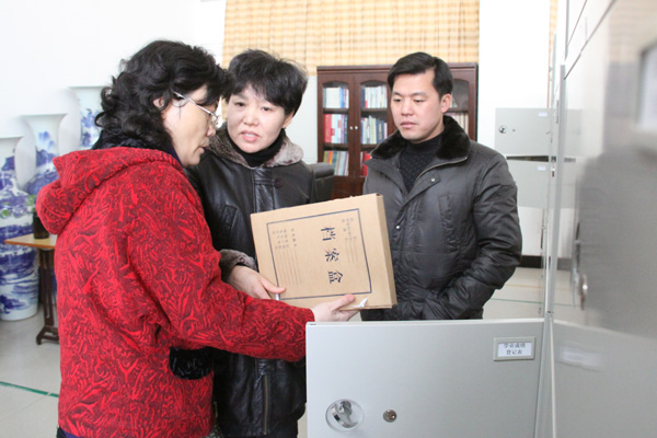 12月16日上午,由安徽省档案局标准化建设处副处长尤正节、安徽省教育厅办公室副主任张尔桂、兄弟高校办公室负责同志一行6人组成的安徽省高校档案年检工作组莅临我校,对我校2011年档案工作进行检查指导。副院长袁种宝、办公室负责同志、档案室工作人员及部分兼职档案员参与了本次档案年检汇报会。检查组专家对照《评分标准》,查看了年检材料,并进入档案库房现场查看档案整理情况,经过专家组评议,我校档案管理工作年检荣获优秀单位荣誉称号。