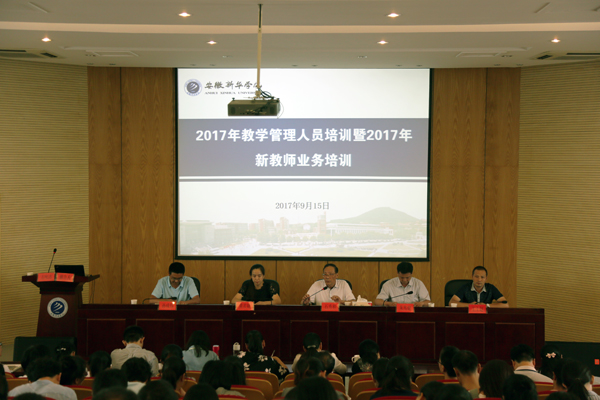 本网讯(通讯员:方骥飞、黎阳)为进一步提高教学管理水平,帮助新进教师尽快适应高校教师的职业特点和要求,增强教学工作的科学性、实效性。9月15日下午,我校“2017年教学管理人员专题培训”暨“2017年新教师业务培训”在学术报告厅顺利开班。校长石秀和,校长助理、教务处处长朱兆健,人事处处长黄君婕,教务处副处长王士赵、孙成伟出席了开班典礼。各教学单位教学管理人员以及全体新进教师100余人参加了此次培训,开班仪式由朱兆健主持。