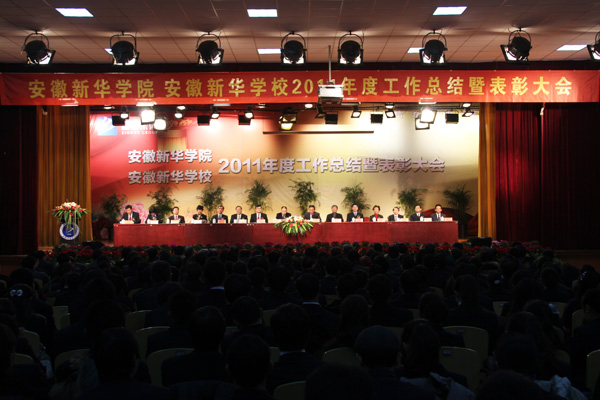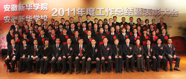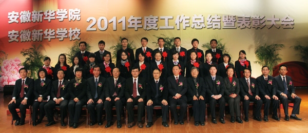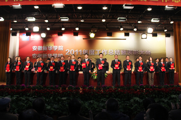 1月15日上午,在欢乐祥和的氛围中,安徽新华学院2011年度工作总结暨表彰大会在学校大礼堂隆重举行。安徽新华集团,安徽新华学院领导出席大会。全校教职工共同聆听了安徽新华学院2011年工作报告,受到表彰的先进集体和个人上台领取了获奖证书。
