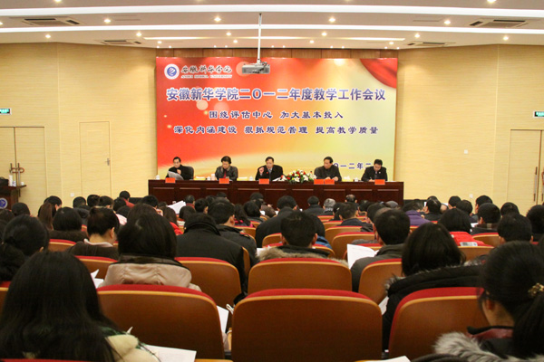 为深入推进本科教学工作合格评估,进一步明确2012年教学工作任务,进一步加强本科教学工作,全面提高本科教学水平和人才培养质量,2月13、14日,全体校领导、中层管理人员、教学口主管秘书以上管理人员、系主任(副主任、主任助理)、讲师及以上职称的教师共聚学术报告厅,召开2012年度教学工作会议,布置2012年教学工作。