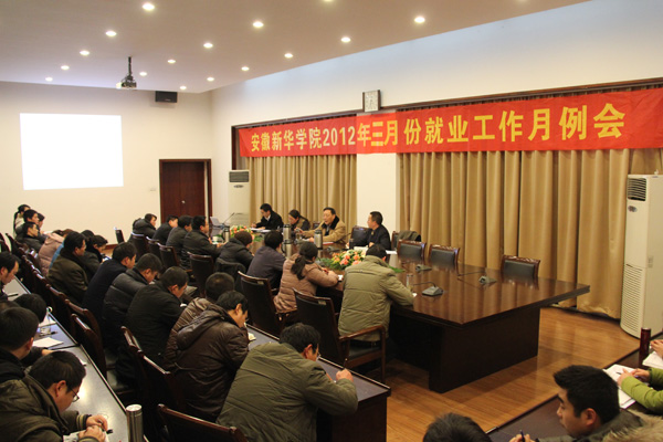 招就办相关负责同志向大会公布了《安徽新华学院2012年度就业工作要点》,要点中明确了2012年就业工作总体目标任务:坚持以市场需求为导向,努力拓宽学校毕业生就业渠道。以“确保数量,提高质量”的就业工作为方针,以市场培育、市场开发和提高就业质量为重点,以“一心一意为学生着想,尽心尽力为单位服务”的宗旨,加强就业指导,提高毕业生就业的竞争力,进一步规范管理,提高服务工作水平,确保毕业生就业质量稳步提升,就业工作安全无事故。她还传达了《关于进一步加强2012届未就业毕业生管理的通知》、《关于举办2012届本科毕业生就业工作座谈会的通知》、《关于推荐优秀学生参与2012年暑期社会实践活动的通知》等通知,部署安排了近期工作,并对2012年安徽省高技能应用型人才招聘会相关工作做了布置。