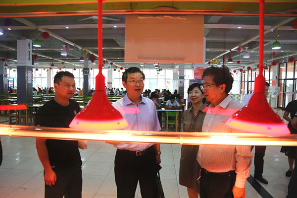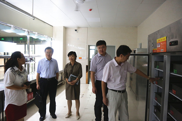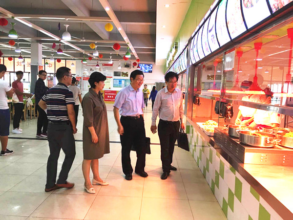 本网讯(通讯员:谭玲)根据《关于实施高校和中专学校学生食堂工作重点检查的通知》(皖教后函[2017]17号)文件精神,9月22日上午,省教育厅学生食堂工作第三检查组——皖南医学院副院长吴金月、省高校后勤管理中心主任陈鹏、铜陵学院总务处副处长王万全等一行4人来我校检查指导学生食堂工作。校长石秀和、副校长王可、总务处处长吴宏东及相关工作人员参加此次接待。