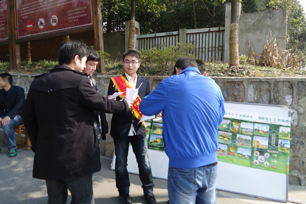 3月14日,电子通信工程学院2009级自动化专业学生自发组织志愿者小分队,在大蜀山的各进山路口进行森林防火知识义务宣传。努力让森林防火安全意识深入人心。志愿者们在学校保卫处的指导下,联合安徽森林公园管理处,于3月14日在通往蜀山的进山各路口开展了为期一天的义务宣传森林防火知识活动。上午九点多钟,志愿者们就带着自制的宣传展板和宣传手册来到了工作地点,大家向上山的游客发放宣传手册,讲解森林防火知识要点,让游客们了解森林火灾有哪些危险和后果、预防森林火灾的主要措施等。(文/仝晓慧、隋忠霞,图/隋忠霞、仝晓慧,审核/操宏华)