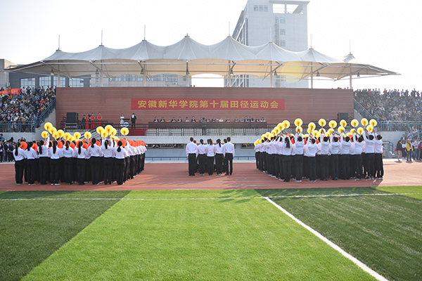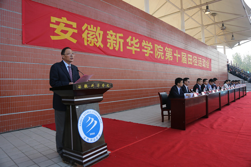 最后,储国定宣布安徽新华学院第十届田径运动会正式开幕。