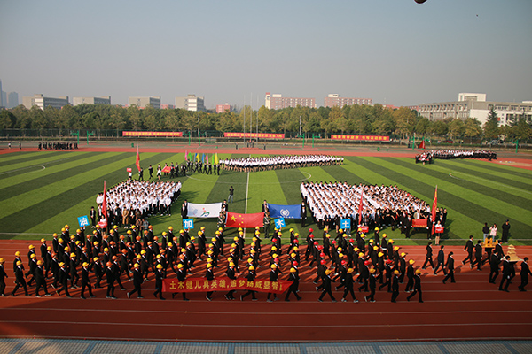 首先入场的是商学院队伍,精神抖擞的他们迈着强健有力的步伐,手持文件夹,大声呐喊着“激情商院,魅力无限”的口号;文化与新闻传播学院方阵前,16名女生以热情洋溢的恰恰舞步和整齐划一的“一字马”展示出大学生的青春气息;电子通信工程学院学子的创新作品——带有标语的六轴飞行器和无人机在体育场上空盘旋,体现了我校学子的实践能力和创新水平,健美操彰显了生机与活力;土木与环境工程学院的学生们头戴黄色安全帽,手举自制的房屋、桥梁模型,以雄浑的气势印证着他们必胜的决心;跟随三个可爱卡通玩偶入场的动漫学院方阵,挥舞着手中五彩的卡通气球,让人眼前一亮……财会与金融学院、外国语学院、信息工程学院、药学院、国际教育学院和科技学院也分别以创意十足、极具特色的方阵展示着各学院特色和学子们昂扬的青春姿态。