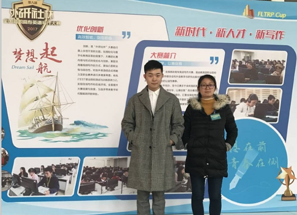 本网讯(通讯员:马兰、洪程)近日,第八届“外研社杯”全国高职高专英语写作大赛全国总决赛在北京外研社国际会议中心举行。在公共英语组比赛中,我校外国语学院教师洪程指导的2016级计算机应用专业学生张健从全国28个赛区800余所高职高专院校的近2000名选手脱颖而出,以总排名第一的成绩荣获公共英语组一等奖。