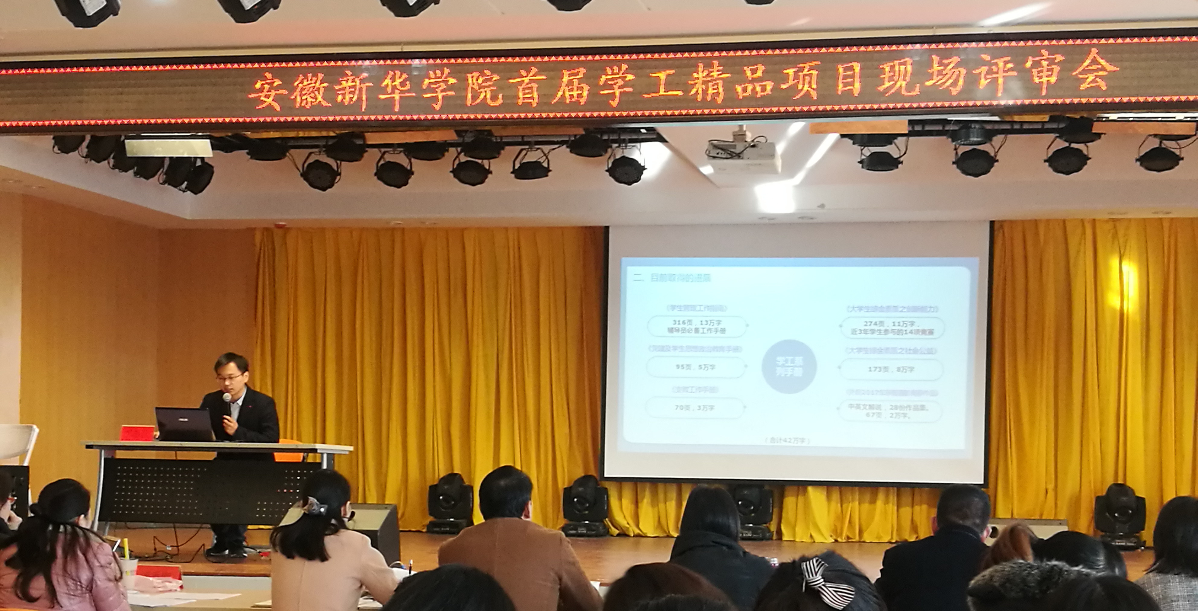 本网讯(通讯员:王强亚)为进一步加强我校学工队伍职业化、专业化建设,提高学工工作服务水平,12月20日,我校学生处在小礼堂组织开展首届学工精品项目现场评审会。副校长王丽、学生处处长汪俊东、各二级学院行政副院长、院长助理(团学工作)、全体辅导员参加会议。