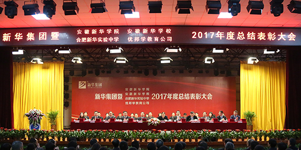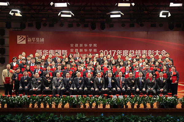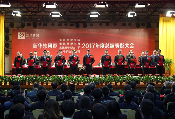 本网讯(王友雅,摄影:金政、陆如海)1月31日上午,新华集团暨安徽新华学院、安徽新华学校、合肥新华实验中学、优邦学教育公司2017年度工作总结表彰大会在我校大礼堂隆重召开。集团、学校领导与千余名教职员工共同回顾总结了2017年取得的成绩,明确了2018年的工作要点与发展方向,并表彰一批成绩突出的先进典型。大会由新华集团副总裁王孝武主持。
