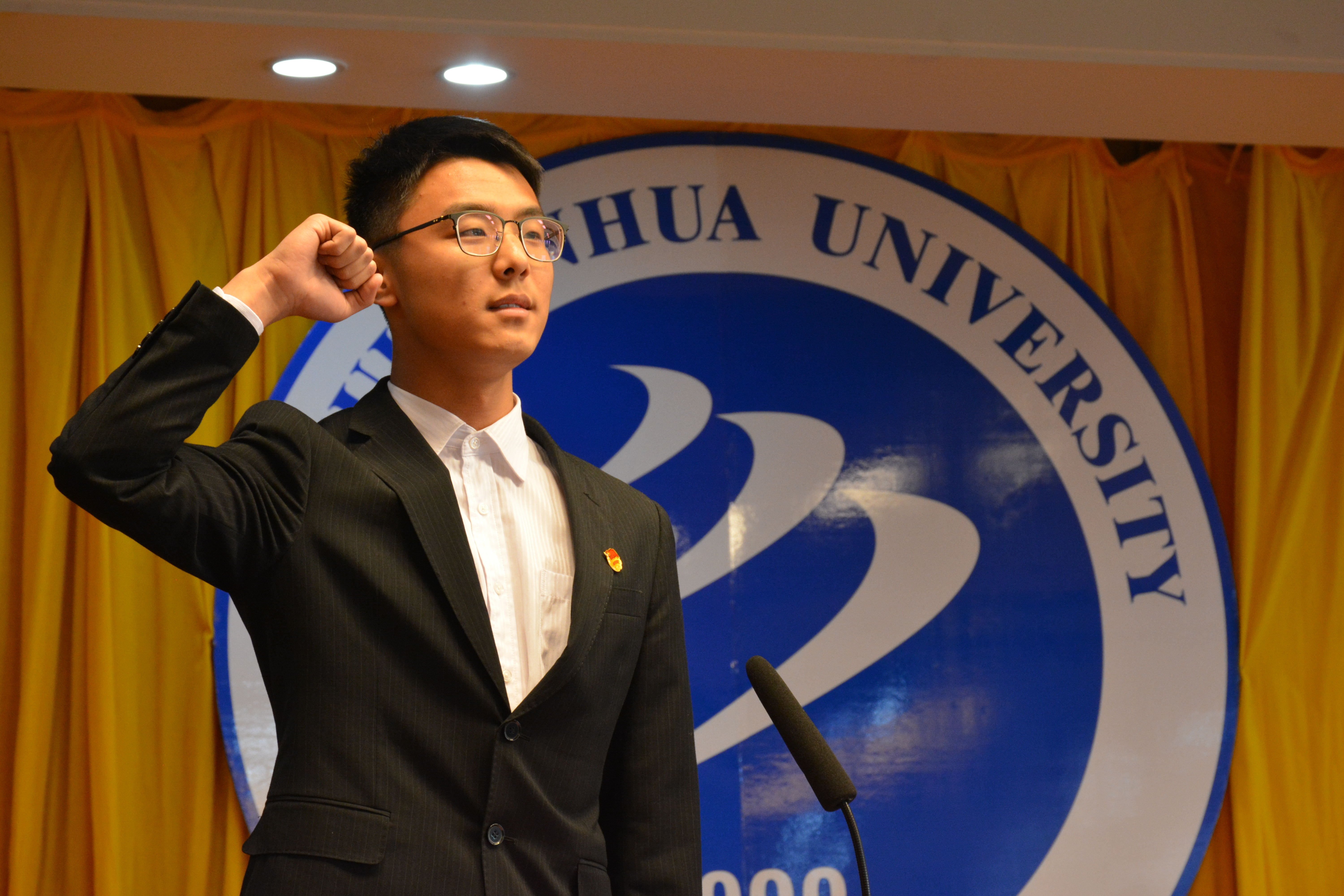 在全体青马班学员宣誓之后,朱兆健发表讲话。他分别从教育意义以及个人成长方面阐述了青马工程开展的重要性,并明确表示青马工程进一步强化了优秀学生精英意识、为学生提供了相互学习与交流的平台,望广大学生干部自觉成为陪伴者和引路人。为此他提出三点要求:第一是希望学生们充分认识“青马工程”的重要意义,重视发挥共青团、学生组织的作用,重视加强第二课堂建设,重视文化与实践的育人作用;第二是希望学生们珍惜学习机会,力争取得优异成绩,学生干部应做到以身作则、以心换心,为其他学生的精神构建、价值确立、心理疏导、情感成长等提供示范标杆;第三是强调作为优秀学生干部应加强自身学习,认真学习和领会党的创新理念,增强理论思考和把握全局的能力,在社会实践中培养独立性判断性的思维模式和与他人合作的良好意识,以实践加深理论学习做“知行合一”的青年马克思主义者。最后,朱兆健表示生活从不眷顾因循守旧、满足现状者,机会是留给善于和勇于创新的人。学生们应坚持探索真知,求真务实的态度,在创新创造中积累经验并投身于社会主义建设。