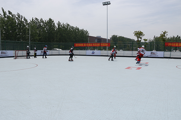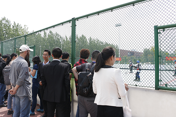 开班仪式后,与会领导和参会人员来到我校轮滑球场地进行考察指导。