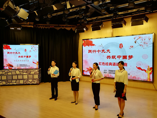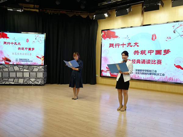 本次比赛由安徽新华学院校工会主办,文化与新闻传播学院分工会承办。参赛选手以饱满的激情、用激昂澎湃的声音演绎了经典,大方得体的举止展现自己的实力,把对党和祖国的感情表达的淋漓尽致。