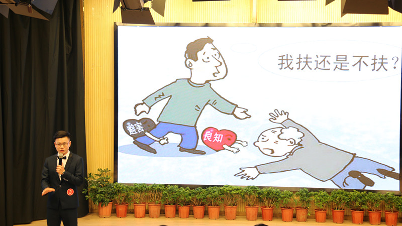此次比赛由一段开场舞拉开帷幕。首先,11位选手分别进行自我介绍,讲出自己的参赛宣言,展示比赛风采。随后,选手进入第一轮自备模拟主持,根据自己准备的材料,进行主持。每个人各具特色,向观众充分展示了主持功底和专业素养。模拟主持后是才艺展示环节,11位选手发挥自己的特长,带来了精彩纷呈的表演。经过两轮的角逐评出6位选手进入第三轮比拼。第三轮时,选手即兴抽取题目,进行即兴口语表达。根据评委打分齐汪顺荣获一等奖,戈哓乐、孙浩然获得二等奖,刘孝洋、白云、吴成晨获得三等奖,杜晴等4位学生获得优秀奖,胡云杰获得最佳台风奖。