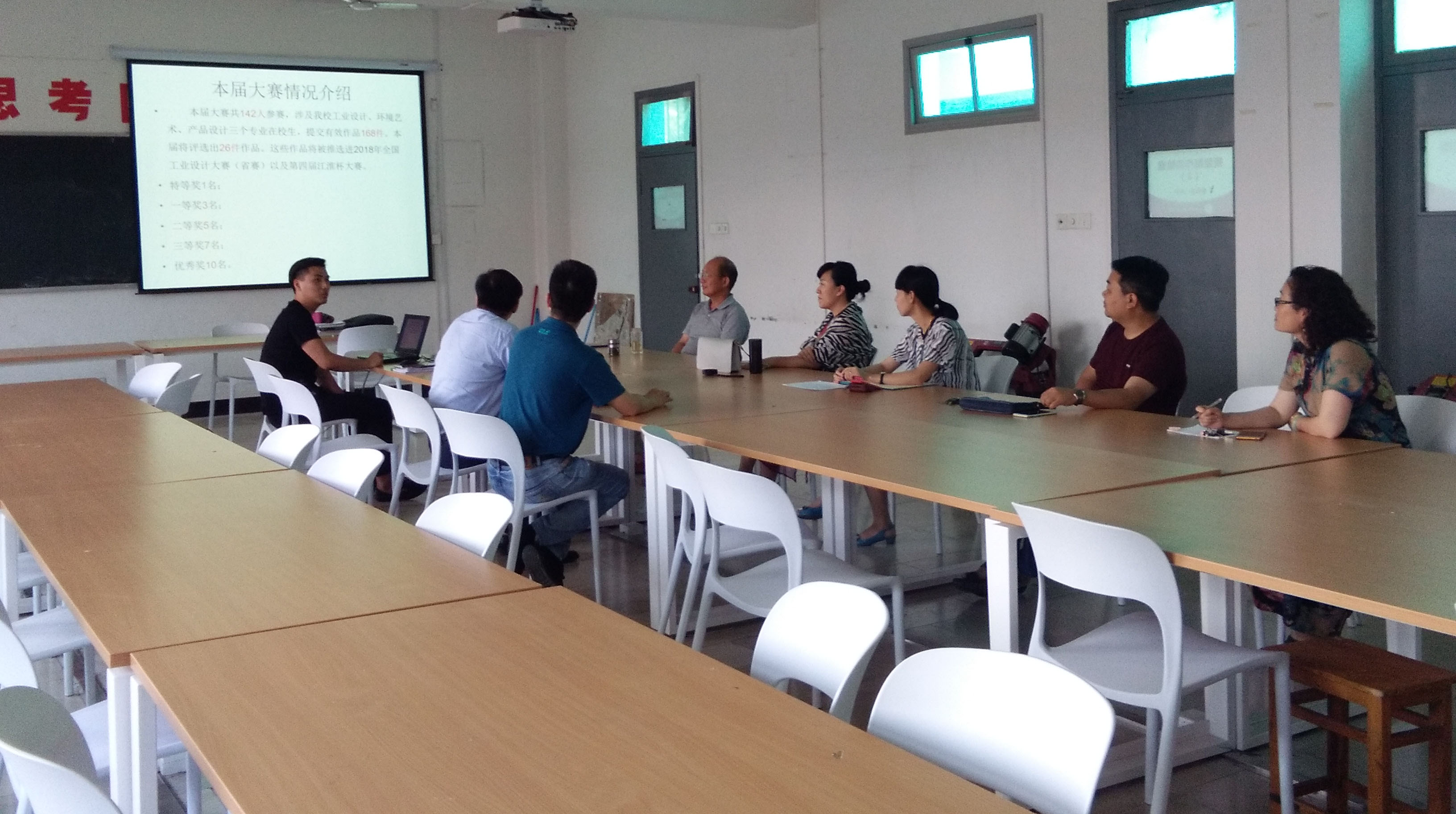 本网讯 (通讯员:张心钰) 6月11日下午,我校第二届大学生工业设计大赛作品评审会在土木与环境工程学院举行。本次评审会旨在遴选学生优秀作品为参加安徽省“江淮杯”工业设计大赛及全国大学生工业设计大赛做好前期准备,会议邀请了土木与环境工程学院执行院长操宏华、副院长谢汝强、工业设计专业学科带头人杨大松教授及相关专业教师担任评委,工业设计专业负责人周宇主持会议并作汇报。