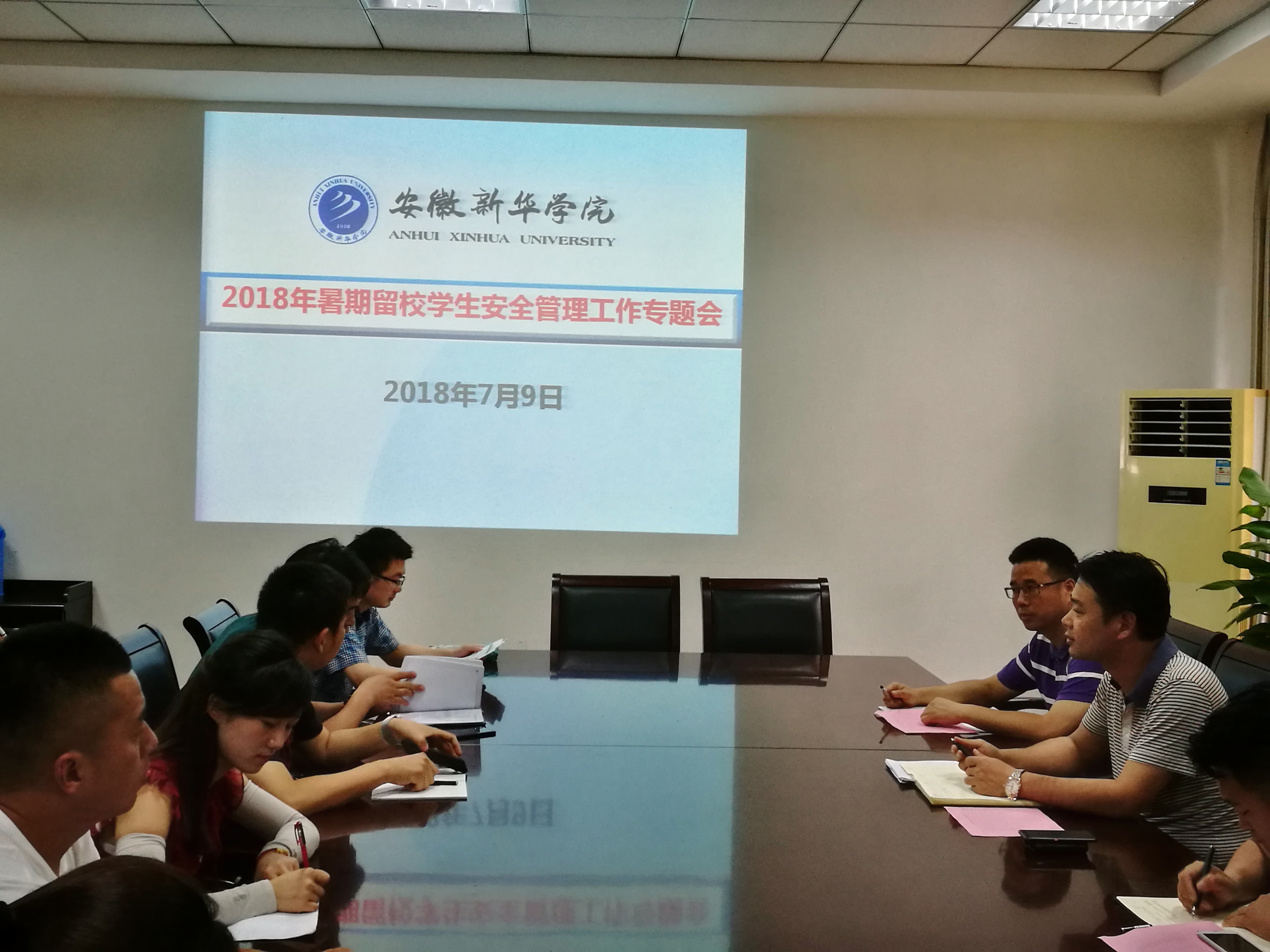 本网讯(通讯员:司长安)7月9日,我校召开2018年暑期留校学生安全管理工作专题会,会议由学生处、保卫处处长汪俊东主持,学生处、保卫处、产业处、通识教育部、动漫学院、药学院、文化与传播学院、土木与环境工程学院、电子通信工程学院、信息工程学院等部门相关责任人参加专题会。