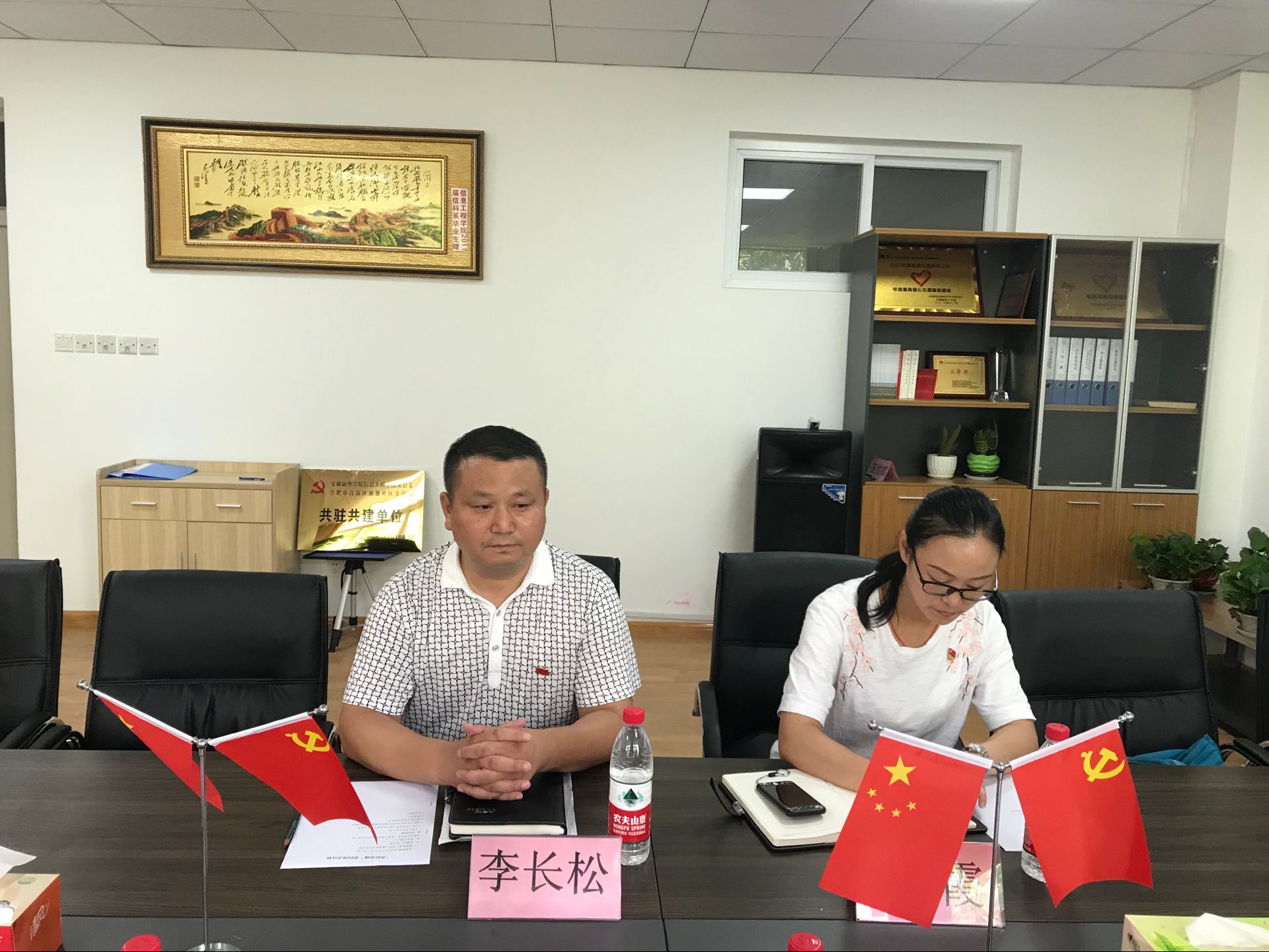 本网讯(通讯员:叶承琼)为深入践行十九大精神,全面推进党组织标准化建设,提升基层党建工作水平。7月17日下午,我校信息工程学院党总支与高新区油墩社区党总支举行“共驻共建”签约仪式。油墩社区党总支组织委员李长松、宣传委员李霞,信息工程学院党总支主要人员参加了签约仪式。