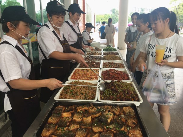 为确保新生及家长的用餐质量和数量,给新生和家长提供安全、健康、可口的饭菜,总务处于开学前专项部署迎新饮食工作,及时召开食堂及各饮食经营单位食品安全工作会议,安排行管人员对各家食堂的食品原材料质量、卫生安全、服务质量等进行跟踪检查,并要求各食堂提前做好全面自查工作。迎新期间,总务处安排行管人员“一对一”进行食堂巡检,实时检查菜品供应质量、卫生安全及服务秩序等情况,严格要求各家食堂延长供餐时间,让广大新生随时吃上可口的饭菜。另为方便新生及家长就餐,用餐高峰时段,校二期广场还增设了临时盒饭售卖点。