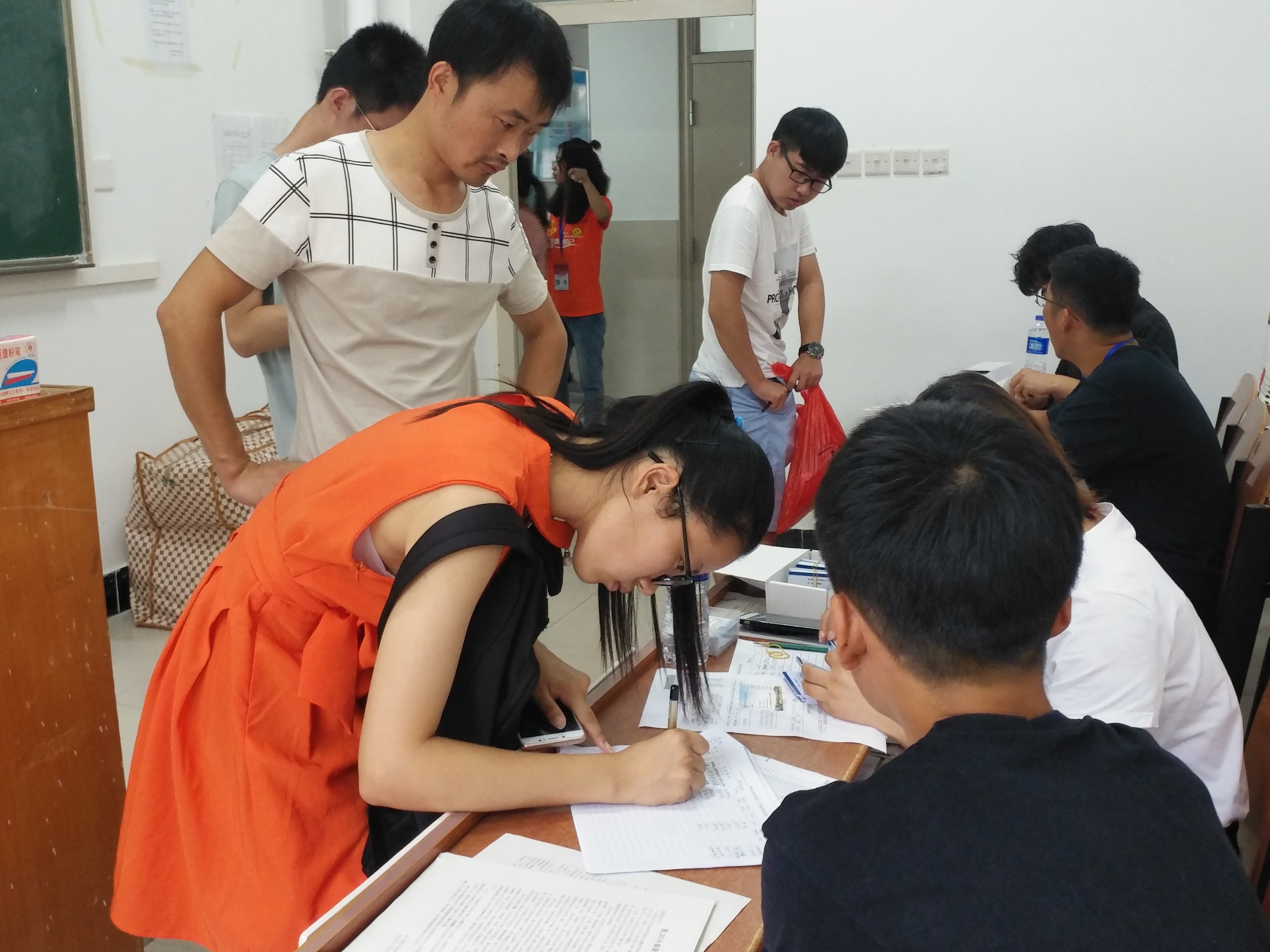 8月31日清晨,薄薄的雾气弥漫在空中,晨曦唤醒了黎明,当学校迎新车缓缓驶入北大门时,迎新工作正式开始。电子通信工程学院接新人员高举“电子通信工程学院”引导牌,从稚嫩而又青涩的新生手中接过沉重的包裹,不断向新同学介绍学校、专业情况以消除新生面对陌生环境的紧张感。工作人员收取新生录取通知书、打印报到单、到本专业辅导员处报到、缴费、领取宿舍日常用品等一站式服务更是让新生及家长倍感安心和感激。即使阳光普照,也有一张张笑脸在等待;即使斜风细雨,也有一把把雨伞在路上;即使日落西山,也有一句句贴心的话语在耳畔……不管新生来的多早或多晚都有工作人员陪伴着他们。