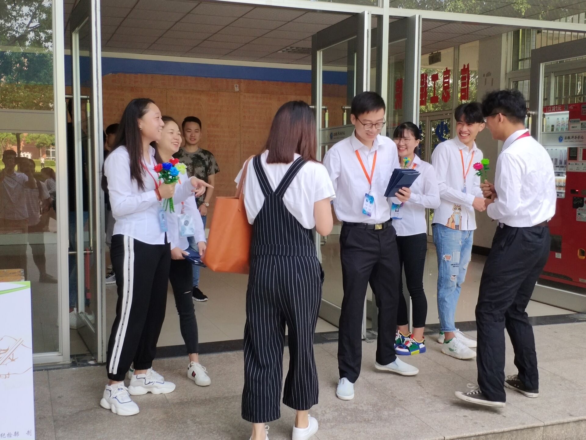 9月10日清早,信息工程学院多位学生站在13栋教学楼下,对每一位进入教学楼的教师进行问候,一声声“老师好,老师您辛苦了!”。为了表达对老师们节日的祝贺,学生们还手工制作了假花,礼物虽简单,却饱含学生们的心意,收到礼物后,老师们的脸上都露出了灿烂的笑容。
