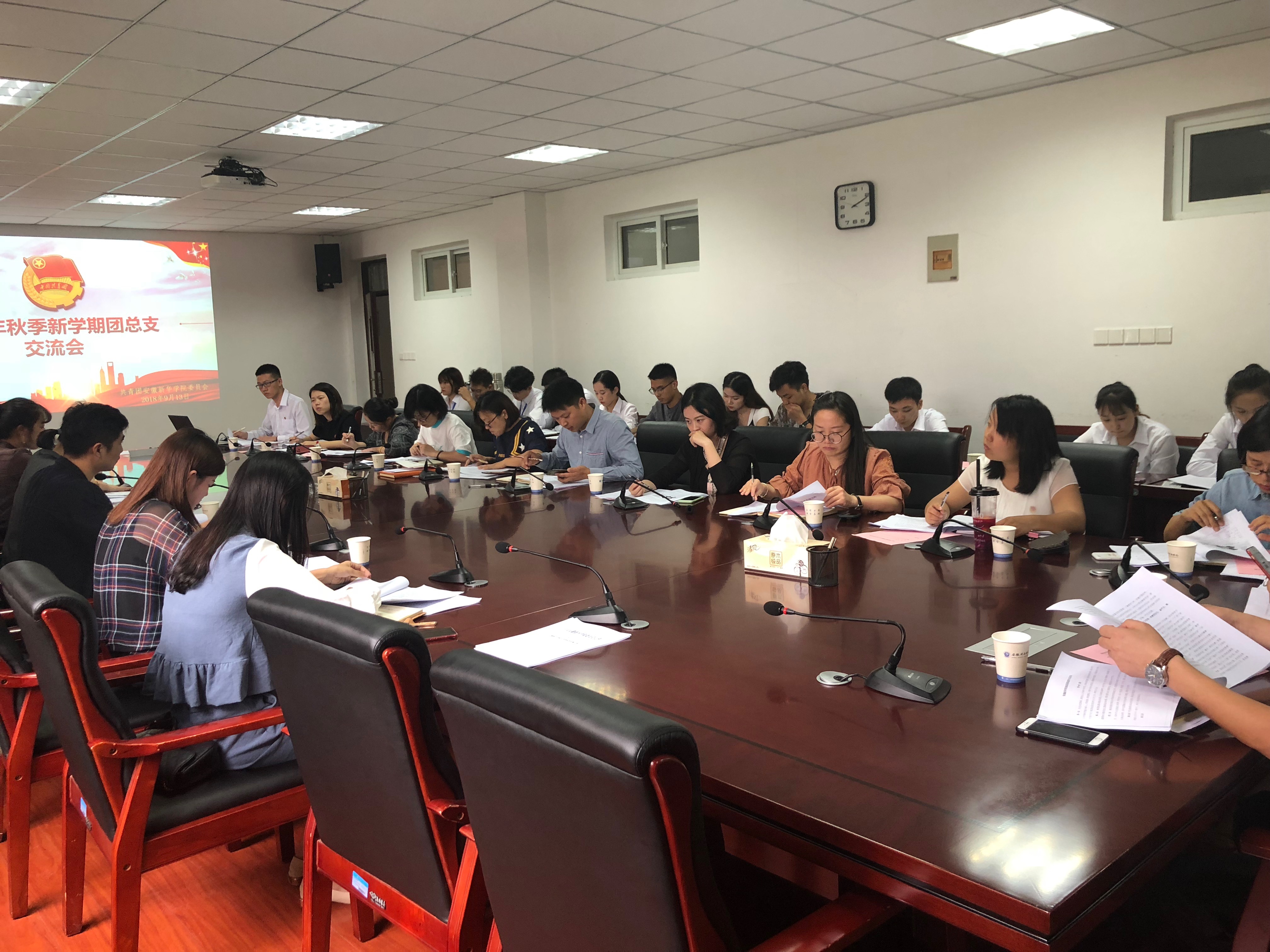 本网讯(通讯员:杨雨婷)为深入学习贯彻习近平新时代中国特色社会主义思想和党的十九大精神及团的十八大精神,贯彻落实党的群团工作会议和全国高校思想政治工作会议精神,9月13日下午14时,校团委于行政楼第一会议室组织开展2018年秋季新学期团总支交流会。参与本次会议的有校团委副书记柯姗姗、团委老师、各二级学院团总支书记以及各学生组织主要骨干,会议由校团委老师杨雨婷主持。