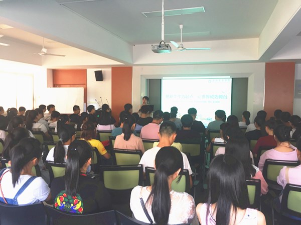 孔星辰老师围绕“国际化办学”展开,通过自身从事工作的经历,向新生详细介绍了我校的国际化办学历程和出国留学项目,提出当代大学生应当普遍具备“Today The School Tomorrow The World”的国际视野与理念,并向同学们讲述了外语学习经历对自身成长与发展的裨益。