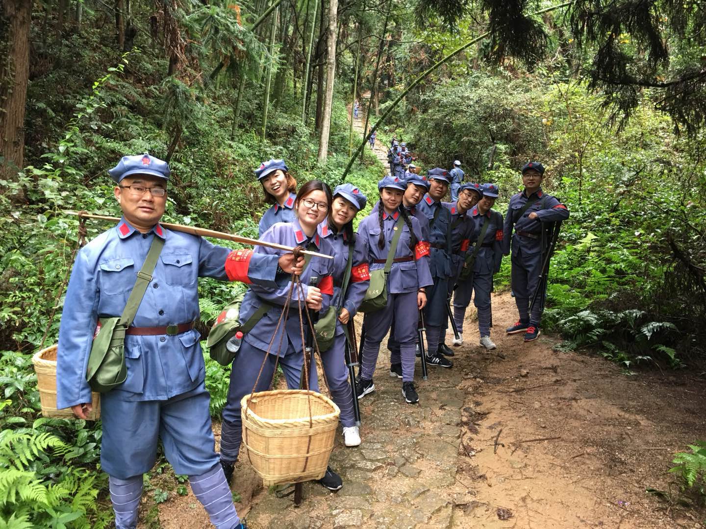 培训过程中,参训人员缅怀革命先烈,敬献花圈,重温入党誓词;穿军服戴军帽、冒雨重走红军挑粮小道,以身临其境的方式,追忆红色历史痕迹,体验革命岁月的战斗生活。