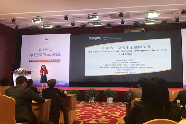 安徽财经大学副校长程刚、安徽财经大学书记兼校长丁忠明、北京企业投资协会会长陈勇、黄山市副市长程红先后代表主办单位致辞,肯定了论坛举办的重要意义,以及绿色发展对新金融的促进作用。随后,联合国原副秘书长陈建、国家发改委中国宏观经济研究院副院长吴晓华、美国哥伦比亚大学教授Graciela Chichilnishy(诺贝尔奖获得者)、美国普渡大学终身教授H.Holly Wang、韩国成均馆大学教授Wan Seon Shin、国家金融与发展实验室副主任杨涛等六位专家分别进行了主题演讲,分别从中美贸易摩擦及其影响、以绿色发展推动经济高质量发展、绿色可持续发展的全球趋势、中美农业发展中的金融作用、新金融推动韩国城市绿色发展、新形势下的金融改革与政策等专题进行了探讨。