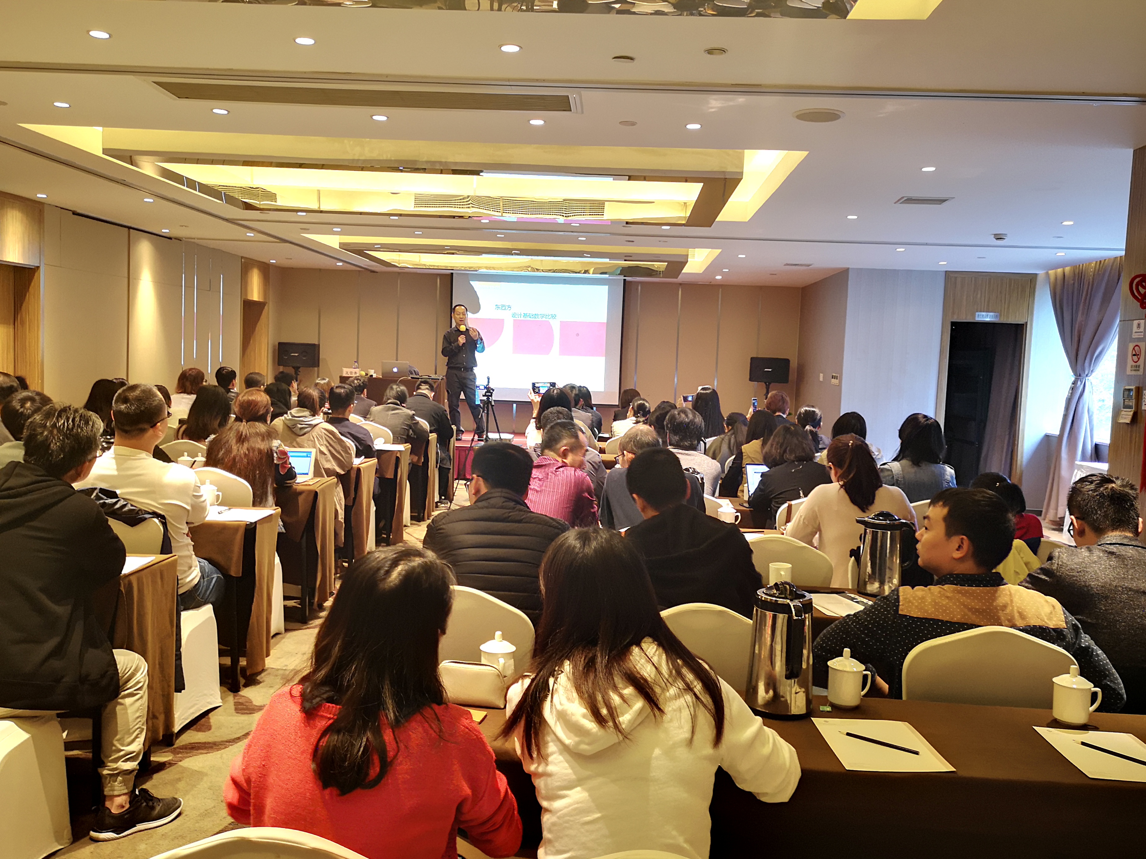 2018年视觉艺术设计高级师资研修班位于杭州中国美术学院,为期6天,由中国美术学院的博士生导师王雪青教授、郑美京教授(韩国),中国美术学院中国国际设计博物馆执行馆长博士生导师袁由敏教授主讲。三位教授分别从视觉传达设计的学科发展、专业特色、课程教学、学生创新思维的培养、前沿技术的应用等方面为参训学员展开了视觉传达设计专业的历史画卷。