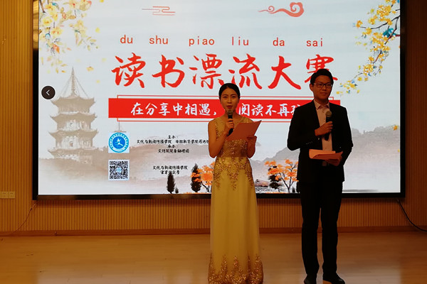 参赛选手结合PPT展示了推荐书目的简介、推荐理由和阅读心得。参赛选手宣郑冉以美食、美人、美情为切点,向评委和观众推荐了名著《红楼梦》,绘声绘色地描述了著作中的美食以及举止见识出于须眉之上的闺阁佳人,令人耳目一新。参赛选手干桂露推荐的《茶馆》通过一个叫裕泰的茶馆揭示了近半个世纪中国社会的黑暗腐败,光怪陆离,以及在这个社会中的芸芸众生,赢得了在场师生的阵阵掌声和肯定。