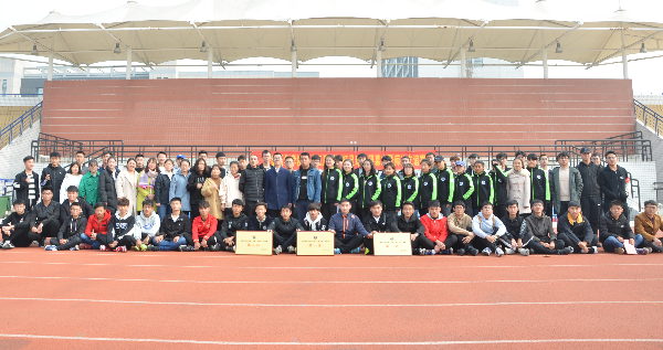 本网讯(通讯员:景欣)11月21日中午,我校第十三届“新生杯”足球赛闭幕式暨师生友谊赛在祥云体育场圆满结束。校长助理方纯洁、跆拳道教练汪洋、指导教师景欣、沈雁平受邀出席闭幕式。