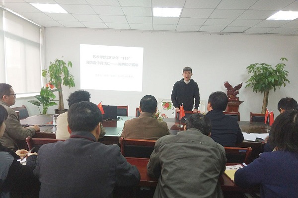 本网讯(通讯员:郑妮)11月14日,艺术学院在会议室进行了2018年“119”消防宣传月之消防安全培训活动,活动邀请了我校消防专员张迎老师进行现场讲解。副院长朱诵贵主持,全体艺术学院教师参加。
