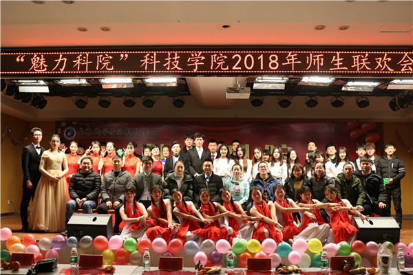 本网讯 (通讯员:肖华君)12月13日晚,为加强科技学院师生的情谊,丰富课余生活,给师生提供一个展示才艺的舞台,科技学院在大学生活动中心举行“魅力科院”师生联欢会,科技学院执行院长孙成伟以及全体教职工观看了晚会。