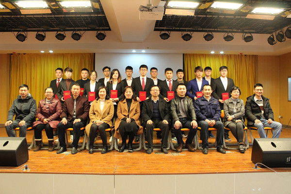 会后,校企双方领导与受表彰的优秀实习生合影留念。