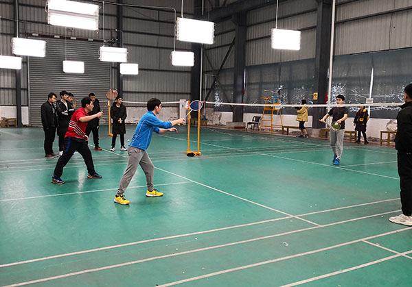 12月25日中午,全体参赛运动员在德仁皇冠羽毛球俱乐部集合,开幕式后,比赛正式开始。比赛形式为联队团体比赛,采取单循环赛制,每个联队可以参加5个项目(男单、女单、男双、女双、混双)的比赛。各参赛队伍精心布阵,场上队员默契配合、攻防结合、顽强拼搏,救球、扣杀等精彩场面不时引发现场观众的欢呼喝彩,展示了安徽新华学院教职工的活力与风采。