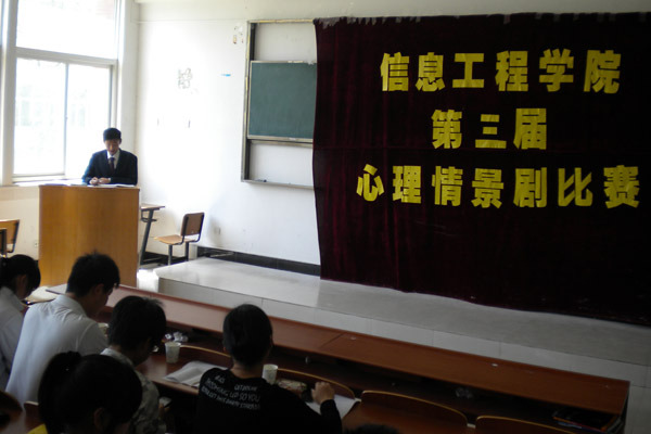 4月23日---5月2日,信息工程学院开展心理情景剧的初赛与复赛,经过宣传,本次比赛活动共有20余支参赛队伍,剧本内容覆盖面较广,有表现大学生迷茫生活、校园恋爱、宿舍矛盾等主题,将同学们在生活中遇到的情感问题表现地形象、生动,再现大学生的思想感情、心理状态以及内心的矛盾与困惑。经过两轮比赛,最终2011级网络工程专业表演的<<当雾迷住双眼>>在比赛中脱颖而出,代表信息工程学院参加安徽新华学院心理情景剧比赛,获得第三名的好成绩。