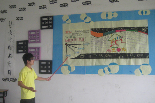 为加强对心理素质健康教育的宣传,普及心理健康知识,帮助大学生更好地了解心理健康的重要性,普及心理健康教育的有关知识,5月23日中午,信息工程学院开展心理健康板报评比活动,其中2011级计算机应用技术专业1班同学将班级装饰出心理健康许愿墙,将每位同学们的心理话写出来挂在墙上,别出心裁。也有的班级设计心理健康墙,贴出心理健康检测的图片,方便同学们日常参看。