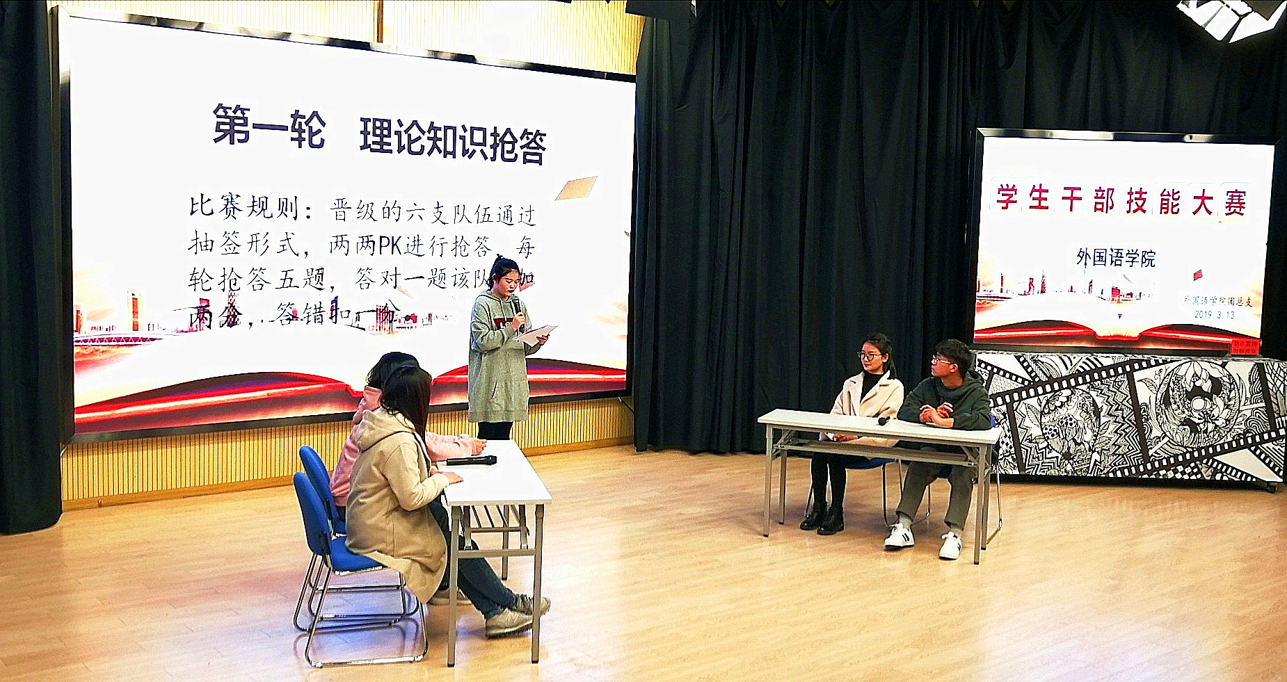 本网讯(通讯员:陈丽)为提升外国语学院学生骨干专业技能与综合素质,引导广大学生骨干增强“四个意识”,坚定“四个自信”,3月11至13日,外国语学院于举办了首届学生骨干技能大赛。