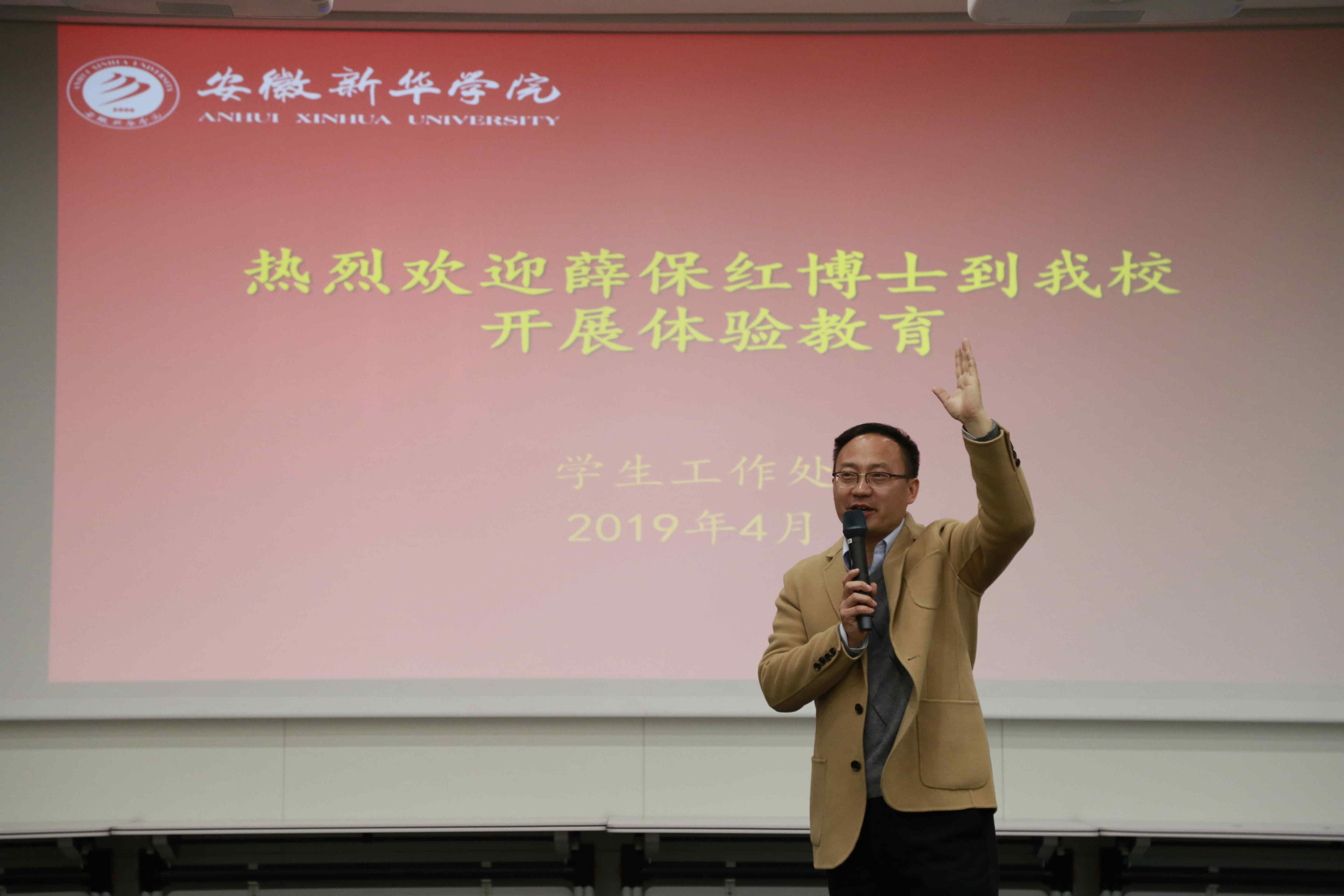 本网讯(通讯员:王强亚)4月2日下午,我校辅导员协会邀请安徽工程大学体验产业学院执行院长薛保红博士在科研楼多媒体厅开展《体验教育创新-高校职业素养训练理论与方法》主题培训,各二级学院副院长、院长助理、学管秘书、全体专兼职辅导员参加培训,培训由学生处副处长王飞主持。