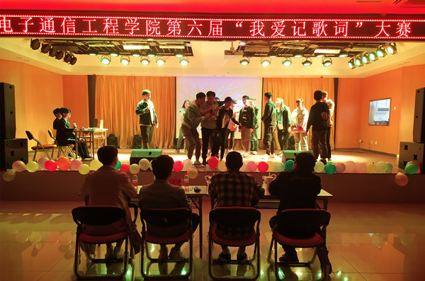 本网讯(通讯员:杨宏)为丰富大学生课余生活,活跃校园文化氛围,展现大学生精神风貌,电子通信工程学院于4月10日晚在学校小礼堂举办第六届“我爱记歌词”大赛。