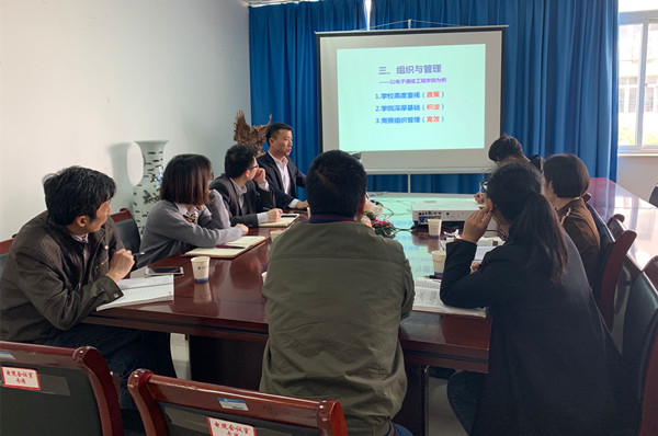 柯姗姗首先对信息工程学院领导和老师的到来表示欢迎,随后介绍了电子通信工程学院学科竞赛开展的总体情况。李长凯对电子通信工程学院近年来学科竞赛方面的工作做了重点汇报,主要包括参加学科竞赛的背景、组织、培训与管理等,并分享了参赛经验和体会。
