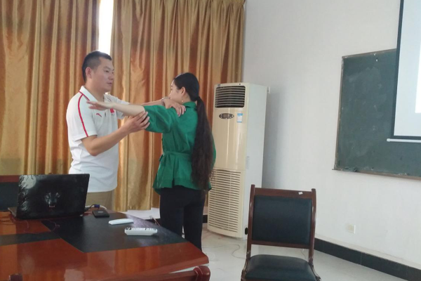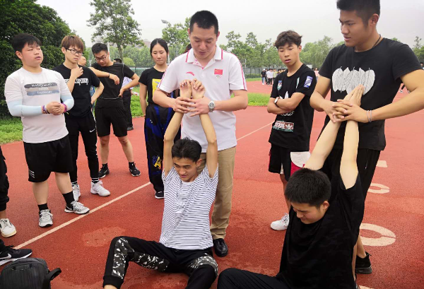 培训过程中刘飞不仅一一回答了教师和队员们的各类提问,还针对大家提出的伤病情况进行现场检查,并到运动场地亲自示范恢复锻炼的动作,教授大家一些常见运动损伤的康复训练方法。