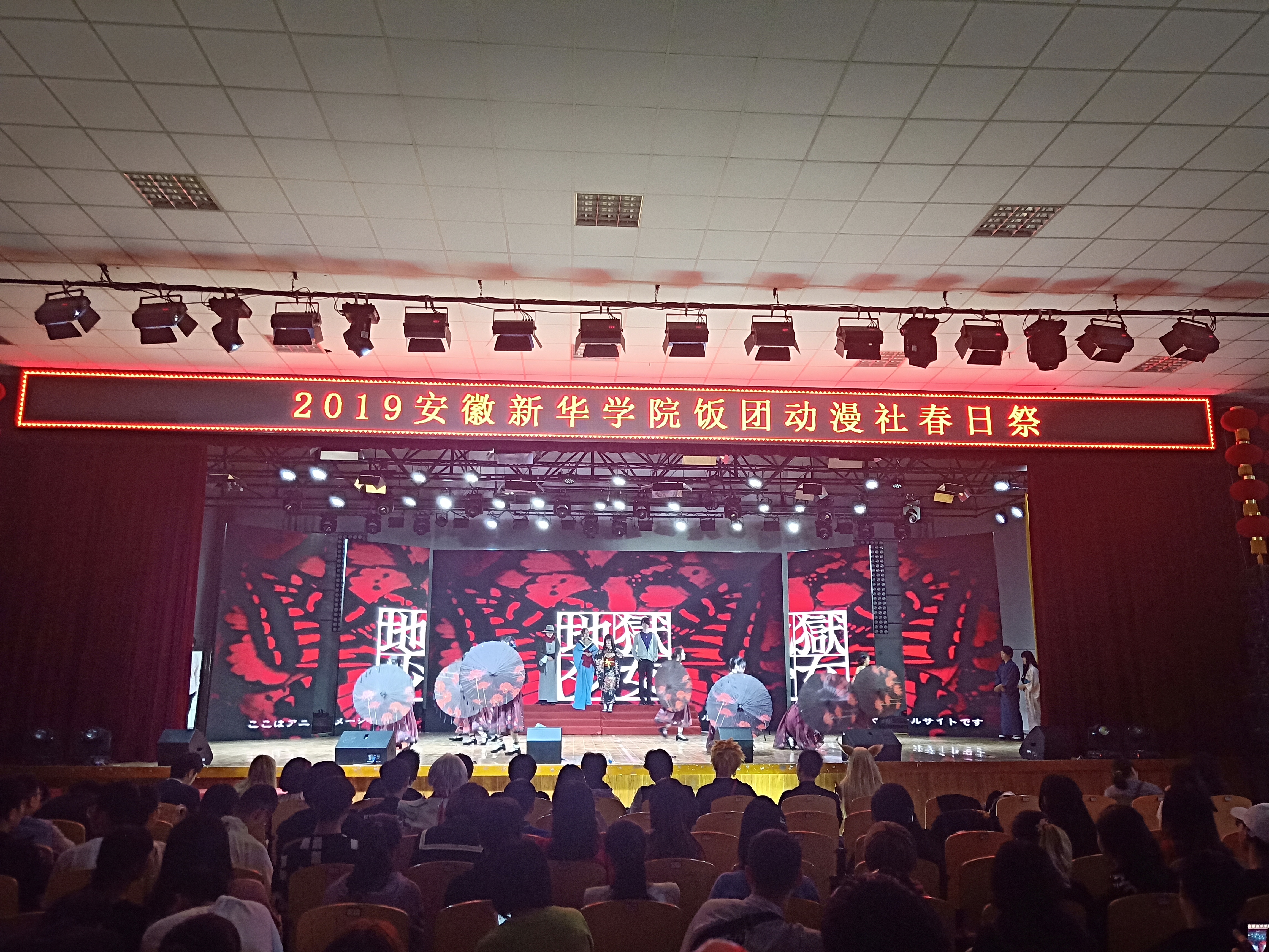 为加强与合肥各大高校社团之间的联系,达到“增进友谊、加深了解、相互学习”这三个目标,展现我校“厚德 求真 博学 创新”的校园文化气氛,丰富同学们的课余文化生活,并且使更多的人能够了解到动漫产业相关的ACG文化。饭团动漫社动漫之夜于4月27日在安徽新华学院大礼堂正式举行。一大批优秀的高校团体前来我校进行一系列与动漫相关的歌曲、宅舞以及COSPLAY舞台剧的表演。本次活动丰富了校园生活,了解我校舞台剧魅力,感受二次元文化的浓郁氛围。带领了我校大学生共同走进绮丽梦幻的动漫世界,感受来自其他区域的ACG文化所带来的震撼与感动,以此丰富大学生的精神世界,陶冶大学生的艺术情操,提高大学生的审美水平。