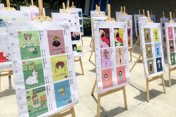 本网讯(通讯员:金燕娇)5月21日,文化与新闻传播学院《广告创意》课程学生作品展在8号教学楼广场成功举办。2016级广告学专业学生创作的140幅平面广告和10篇创意文案作品在此次课程展中展出。