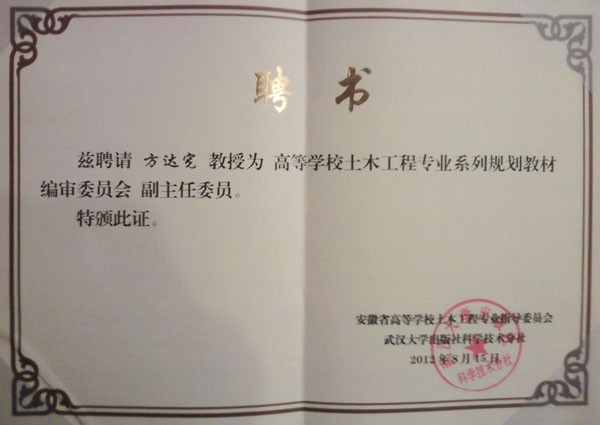 我校一教师受聘省高校土木专业教材审编委员会副主任委员